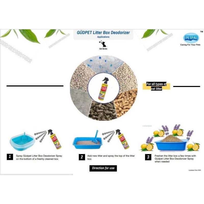 3) Freshen the litter box a few times with gudpet litter box deodorizer spray when needed.